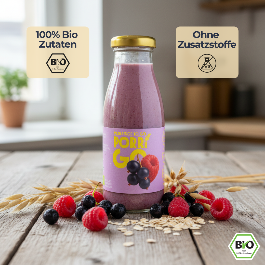 Probiere unseren fruchtig leckeren Beerenmix und entdecke, wie praktisch PorriGO ist! Ideal für alle, die keine Kompromisse zwischen Genuss und ausgewogener Ernährung machen wollen.